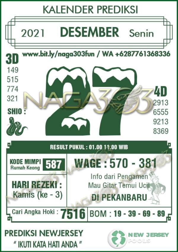 Prediksi Newjersey Pools Senin 27 Desember 2021 | Web Toto Naga303