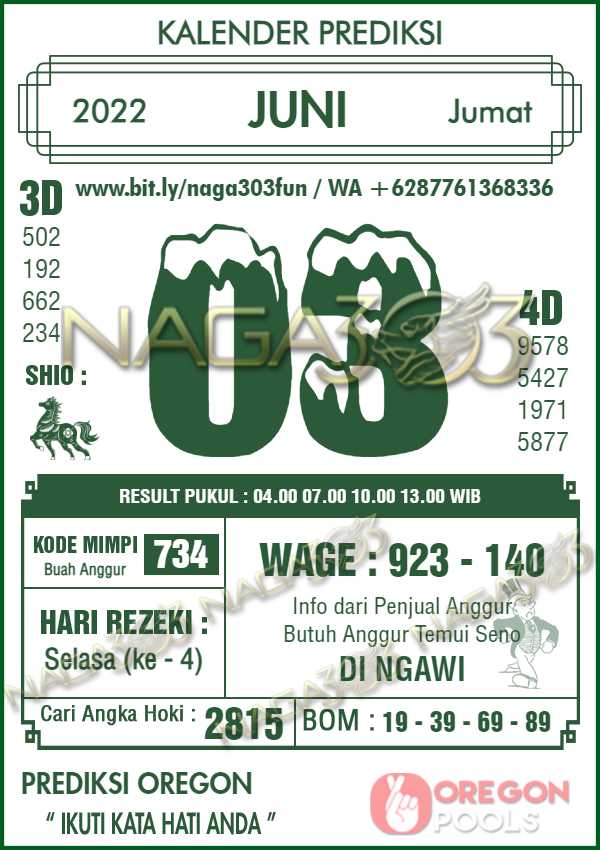Prediksi Oregon Pools Jumat 03 Juni 2022 | Web Toto Naga303