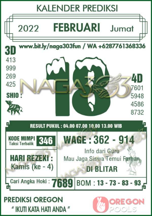 Prediksi Oregon Pools Jumat 18 Februari 2022 | Web Toto Naga303