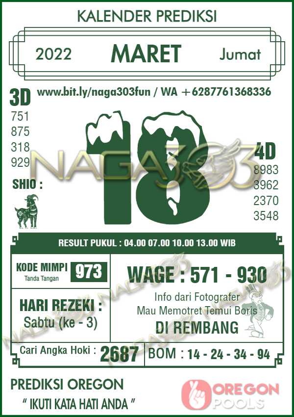 Prediksi Oregon Pools Jumat 18 Maret 2022 | Web Toto Naga303
