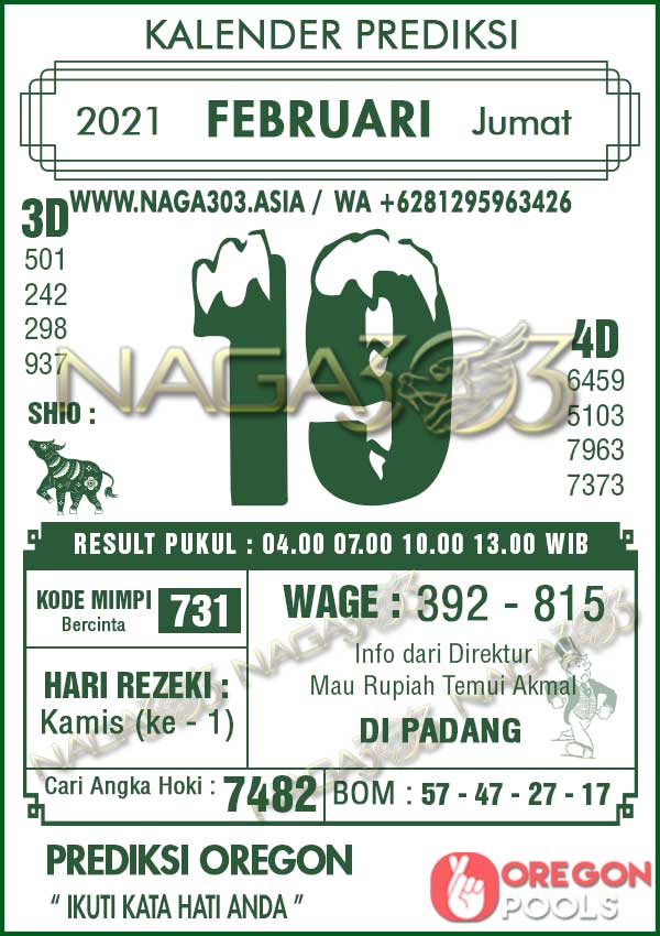 Prediksi Oregon Pools Jumat 19 Februari 2021 | Web Toto Naga303