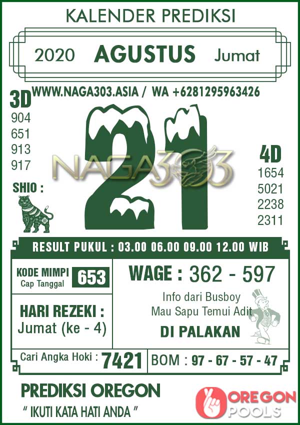 Prediksi Oregon Pools Jumat 21 Agustus 2020 | Web Toto Naga303