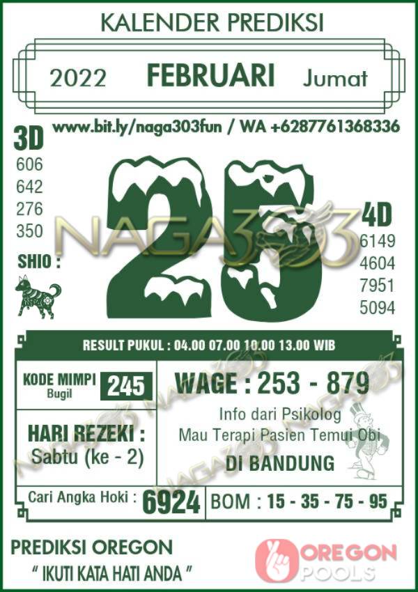 Prediksi Oregon Pools Jumat 25 Februari 2022  | Web Toto Naga303