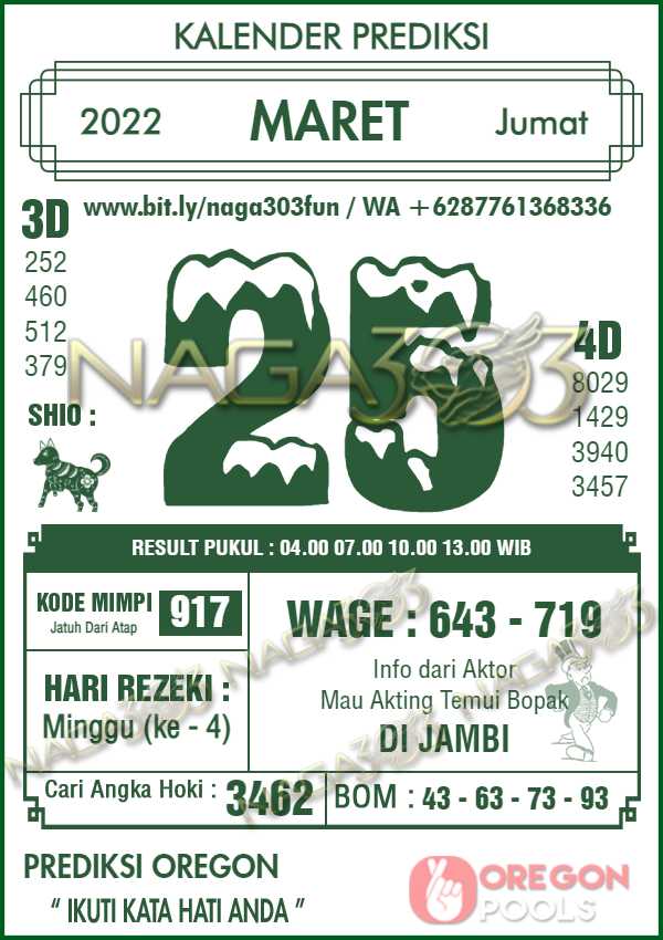 Prediksi Oregon Pools Jumat 25 Maret 2022 | Web Toto Naga303