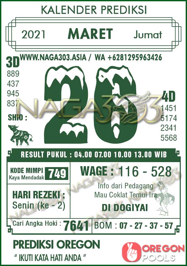 Prediksi Oregon Pools Jumat 26 Maret 2021 | Web Toto Naga303