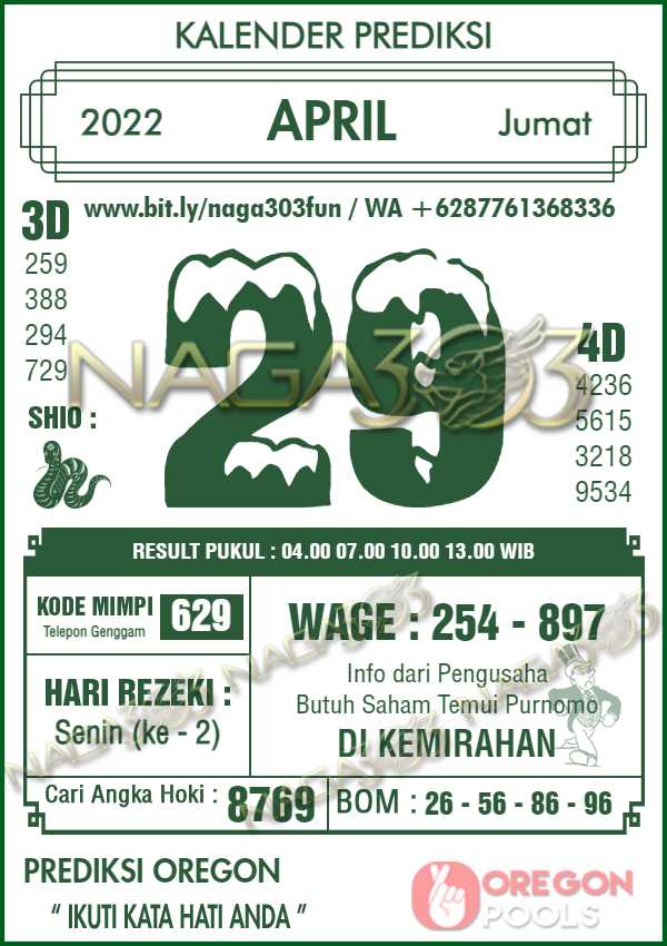 Prediksi Oregon Pools Jumat 29 April 2022 | Web Toto Naga303