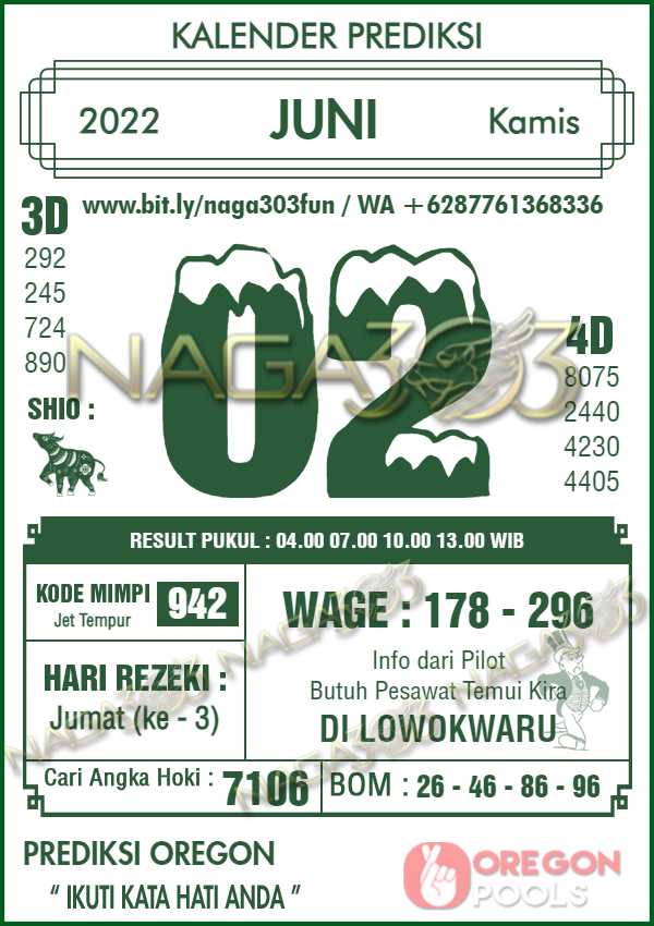 Prediksi Oregon Pools Kamis 02 Juni 2022 | Web Toto Naga303