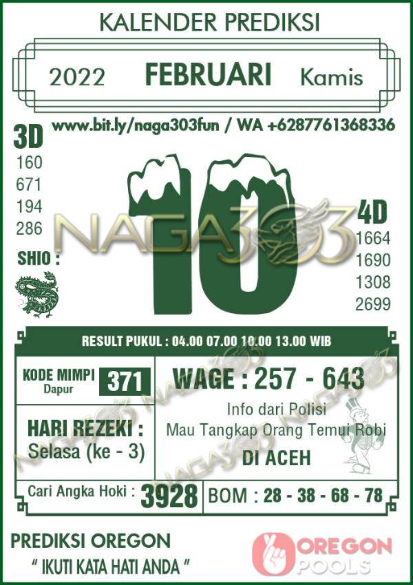 Prediksi Oregon Pools Kamis 10 Februari 2022 | Web Toto Naga303