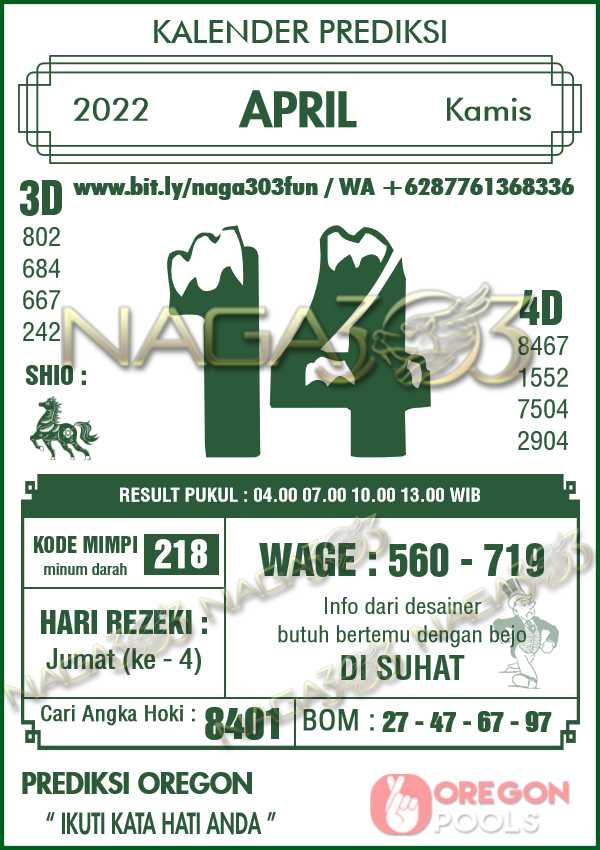 Prediksi Oregon Pools Kamis 14 April 2022 | Web Toto Naga303