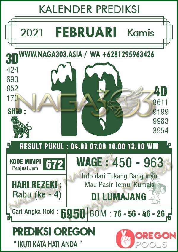 Prediksi Oregon Pools Kamis 18 Februari 2021 | Web Toto Naga303
