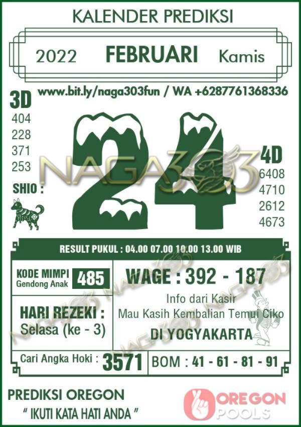 Prediksi Oregon Pools Kamis 24 Februari 2022 | Web Toto Naga303