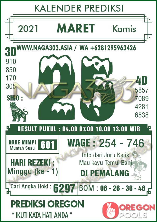 Prediksi Oregon Pools Kamis 25 Maret 2021 | Web Toto Naga303