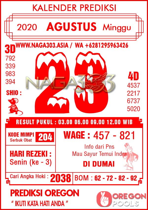 Prediksi Oregon Pools Minggu 23 Agustus 2020 | Web Toto Naga303