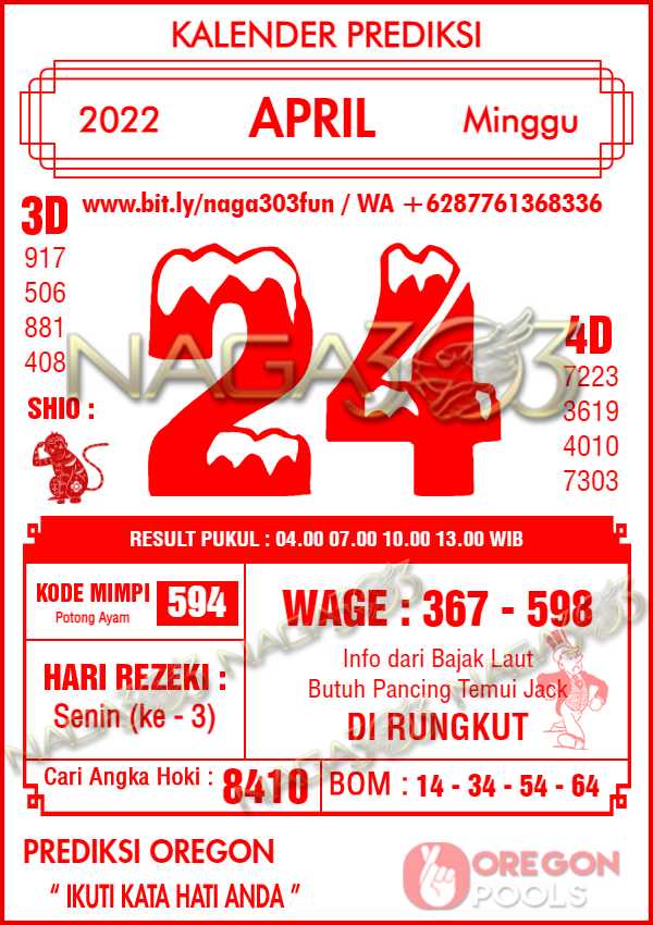 Prediksi Oregon Pools Minggu 24 April 2022 | Web Toto Naga303