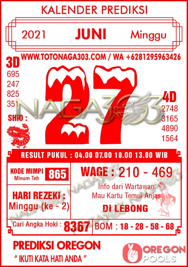 Prediksi Oregon Pools Minggu 27 Juni 2021 | Web Toto Naga303