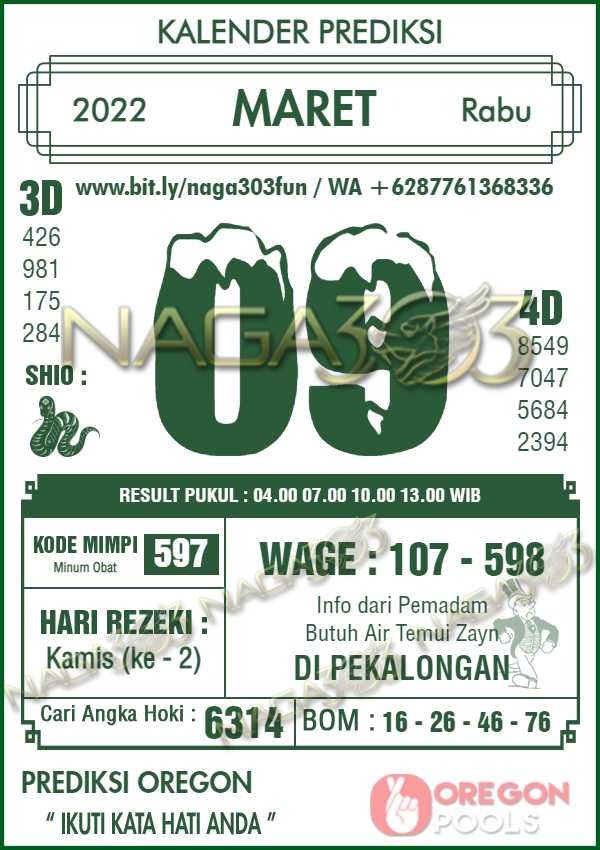 Prediksi Oregon Pools Rabu 09 Maret 2022 | Web Toto Naga303