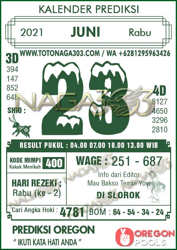 Prediksi Oregon Pools Rabu 23 Juni 2021 | Web Toto Naga303