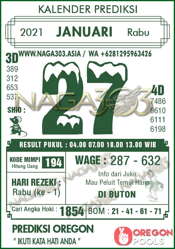 Prediksi Oregon Pools Rabu 27 Januari 2021 | Web Toto Naga303
