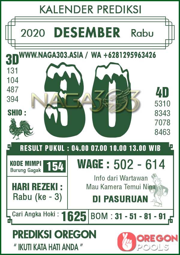 Prediksi Oregon Pools Rabu 30 Desember 2020 | Web Toto Naga303