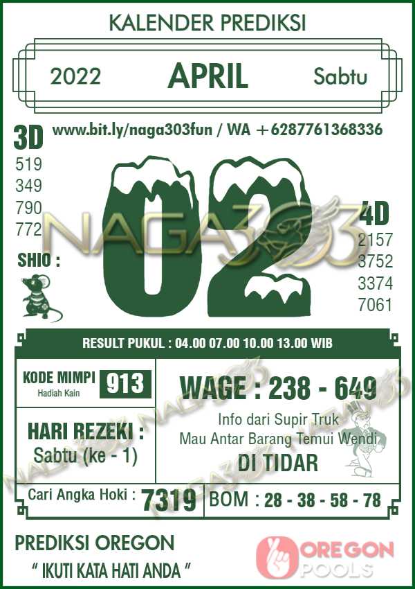 Prediksi Oregon Pools Sabtu 02 April 2022 | Web Toto Naga303
