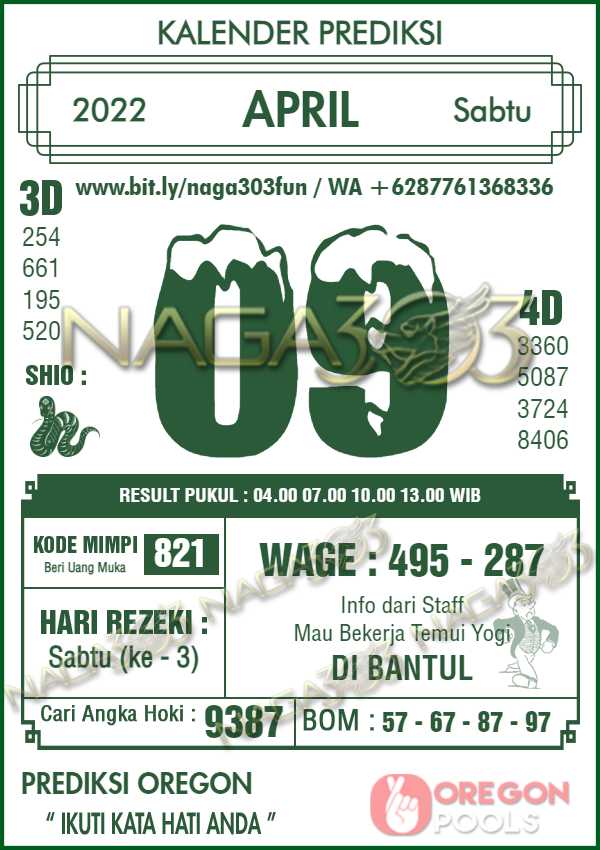 Prediksi Oregon Pools Sabtu 09 April 2022 | Web Toto Naga303