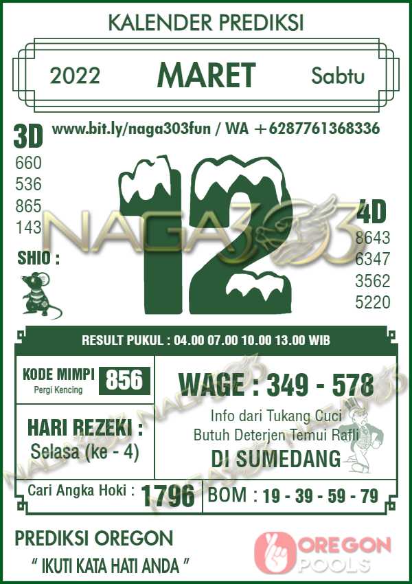 Prediksi Oregon Pools Sabtu 12 Maret 2022 | Web Toto Naga303