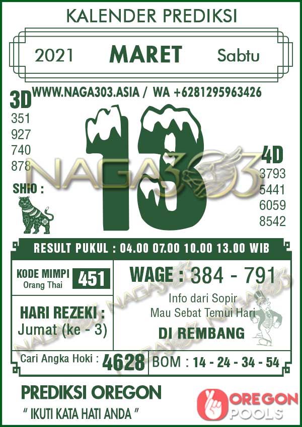 Prediksi Oregon Pools Sabtu 13 Maret 2021 | Web Toto Naga303