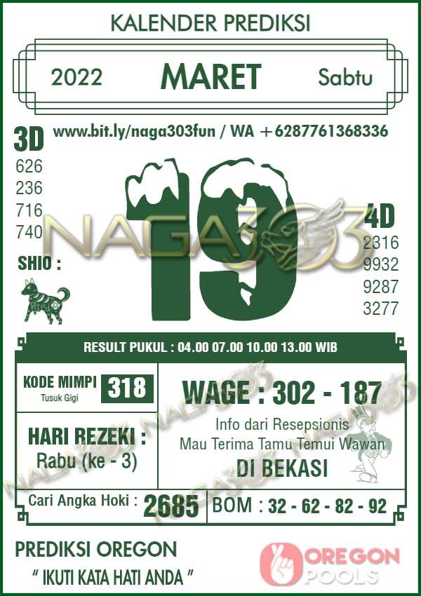 Prediksi Oregon Pools Sabtu 19 Maret 2022 | Web Toto Naga303