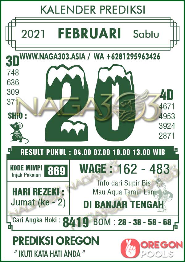 Prediksi Oregon Pools Sabtu 20 Februari 2021 | Web Toto Naga303