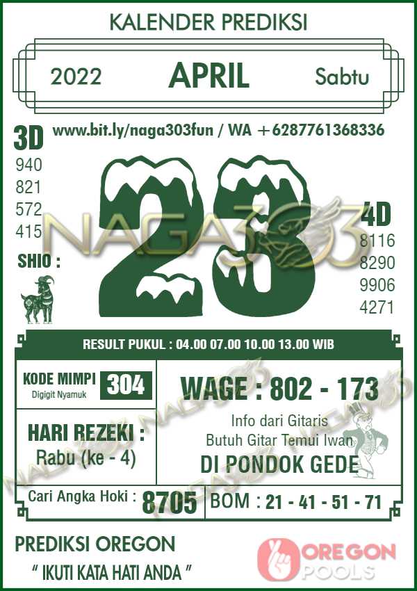Prediksi Oregon Pools Sabtu 23 April 2022 | Web Toto Naga303