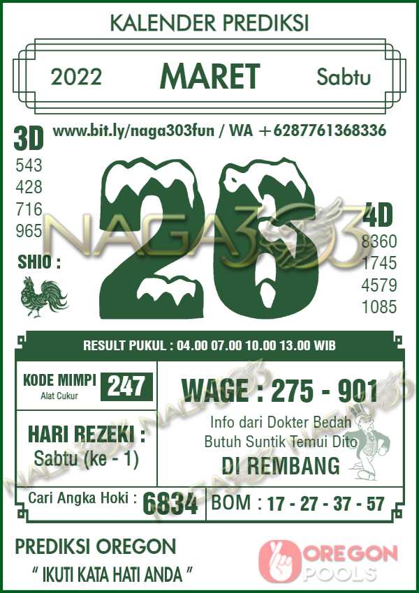 Prediksi Oregon Pools Sabtu 26 Maret 2022 | Web Toto Naga303
