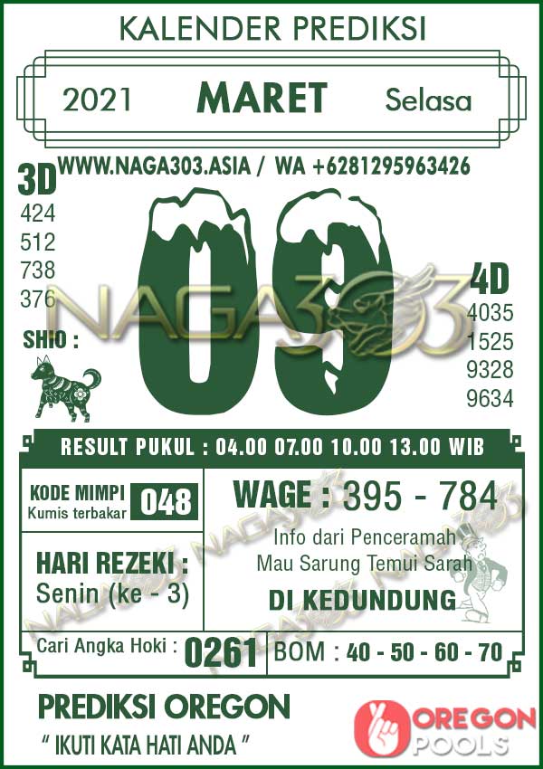 Prediksi Oregon Pools Selasa 09 Maret 2021 | Web Toto Naga303