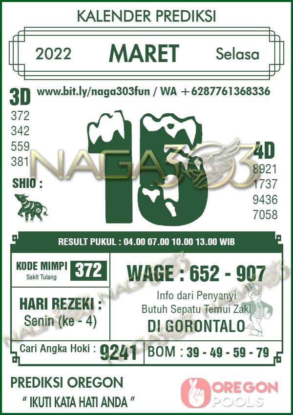 Prediksi Oregon Pools Selasa 15 Maret 2022 | Web Toto Naga303
