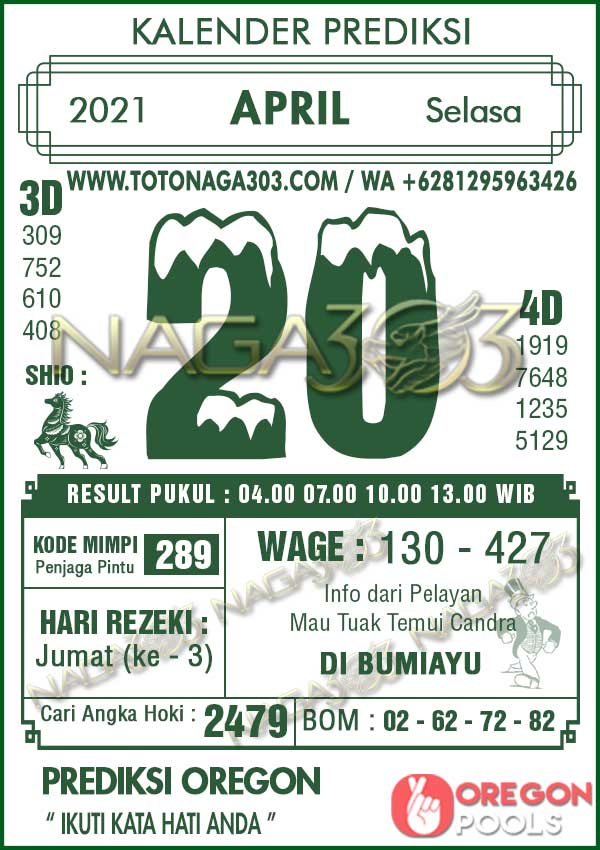 Prediksi Oregon Pools Selasa 20 April 2021 | Web Toto Naga303