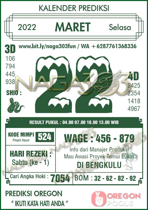 Prediksi Oregon Pools Selasa 22 Maret 2022 | Web Toto Naga303