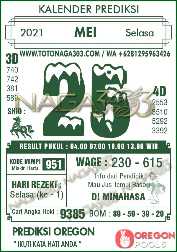 Prediksi Oregon Pools Selasa 25 Mei 2021 | Web Toto Naga303