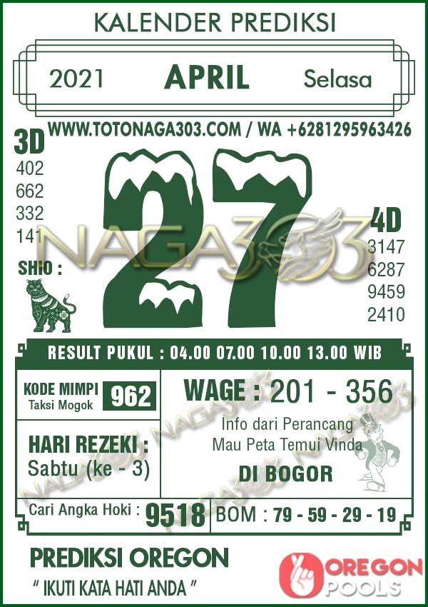 Prediksi Oregon Pools Selasa 27 April 2021 | Web Toto Naga303