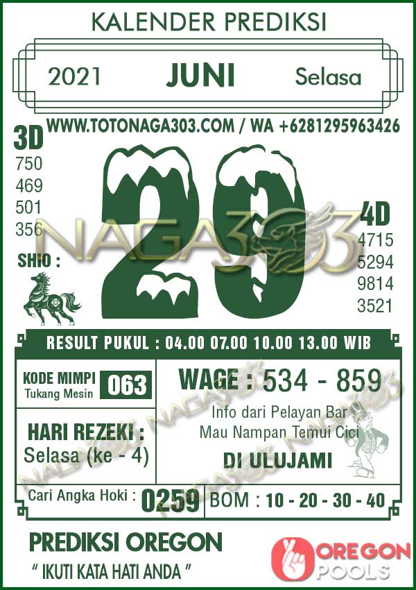Prediksi Oregon Pools Selasa 29 Juni 2021 | Web Toto Naga303