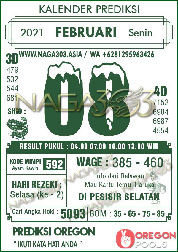 Prediksi Oregon Pools Senin 08 Februari 2021 | Web Toto Naga303