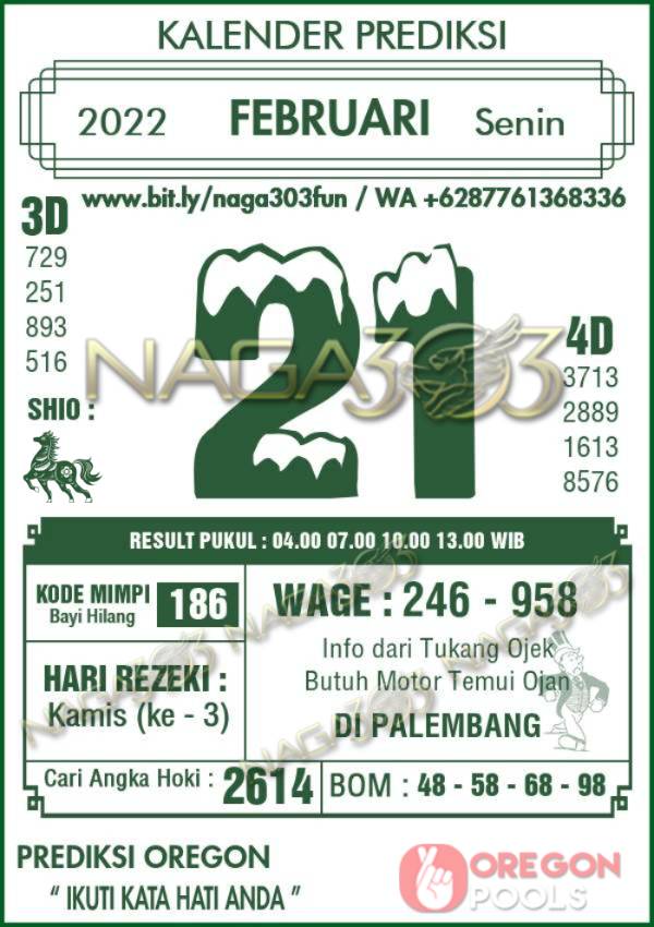 Prediksi Oregon Pools Senin 21 Februari 2022 | Web Toto Naga303