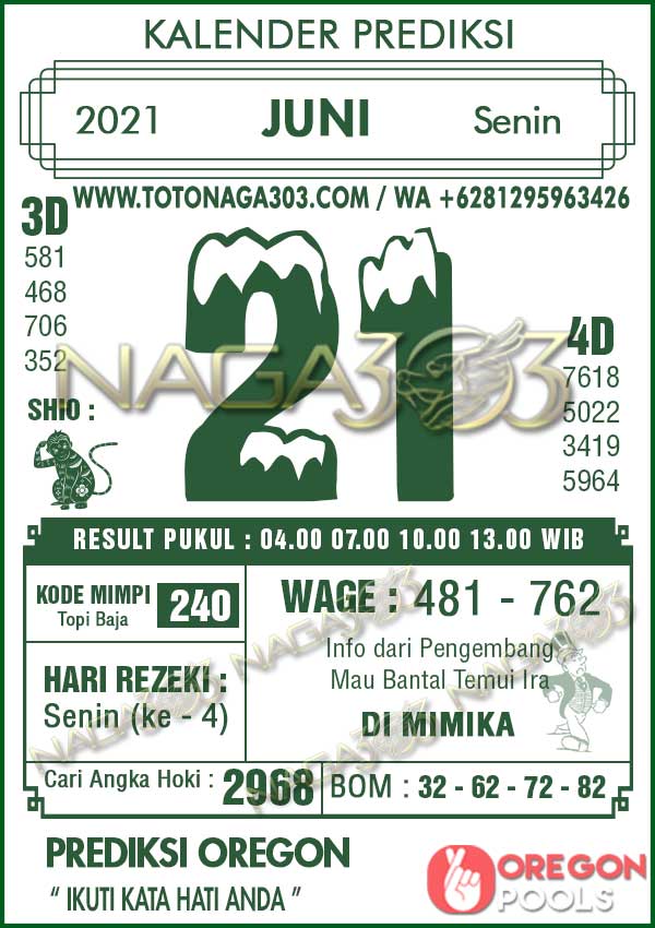 Prediksi Oregon Pools Senin 21 Juni 2021 | Web Toto Naga303