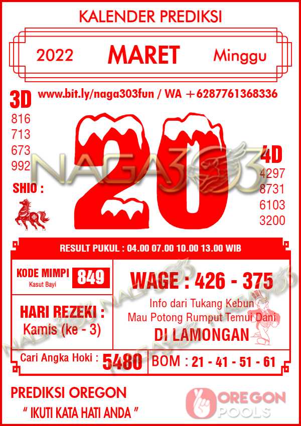 Prediksi Oregon Pools Senin 21 Maret 2022 | Web Toto Naga303