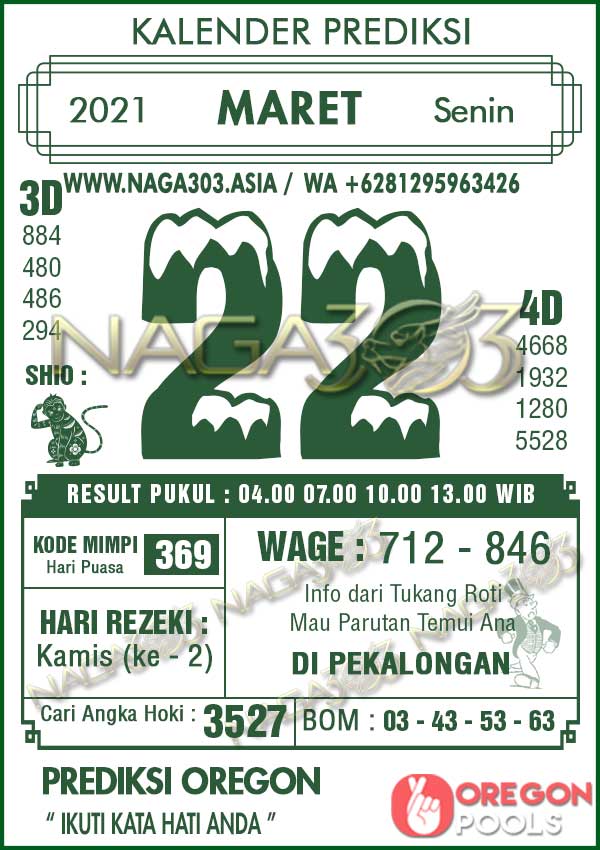 Prediksi Oregon Pools Senin 22 Maret 2021 | Web Toto Naga303