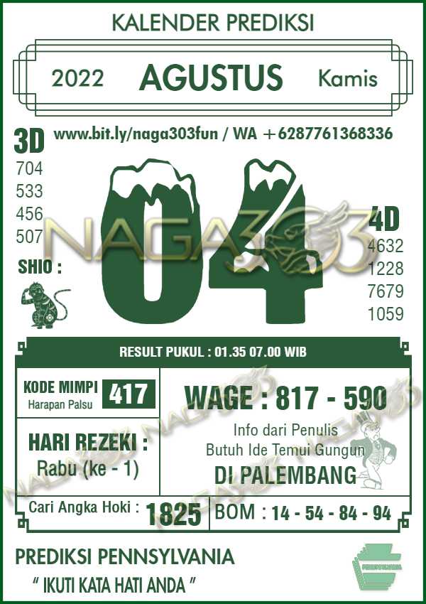 Prediksi Pennsylvania Pools Kamis 04 Agustus 2022