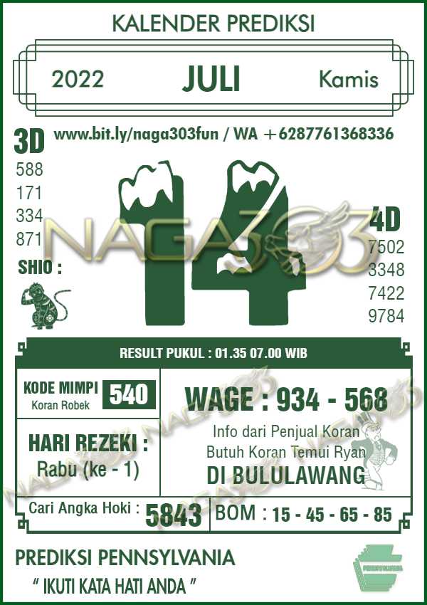 Prediksi Pennsylvania Pools Kamis 14 Juli 2022 | Web Toto Naga303