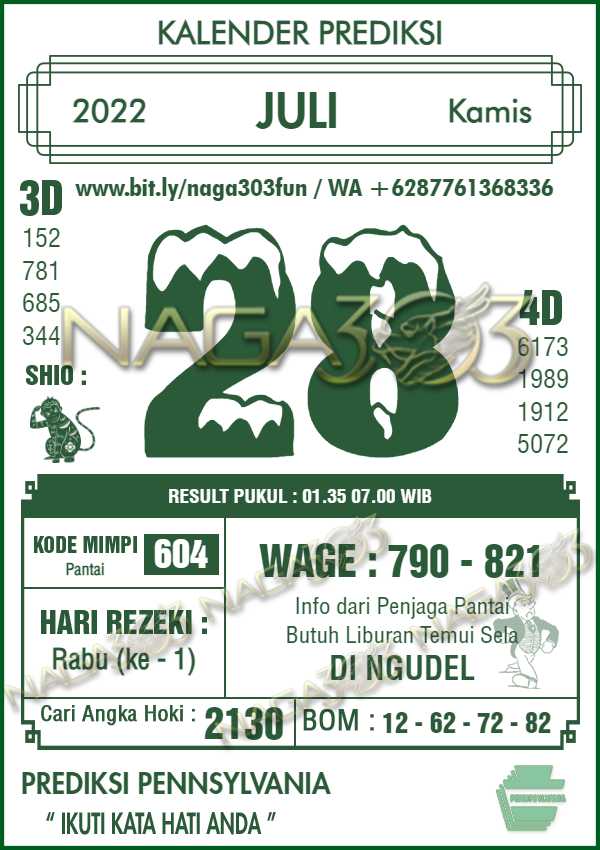 Prediksi Pennsylvania Pools Kamis 28 Juli 2022 | Web Toto Naga303