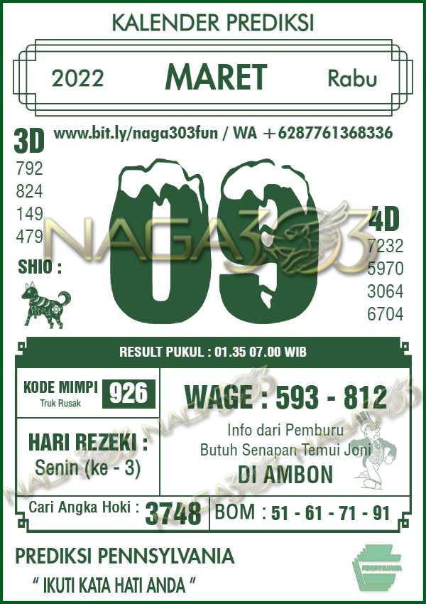 Prediksi Pennsylvania Pools Rabu 09 Maret 2022 | Web Toto Naga303