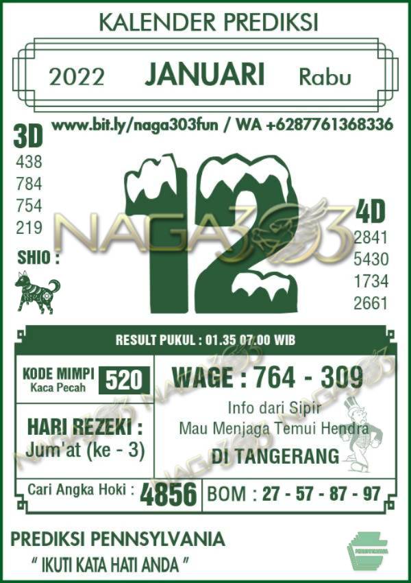 Prediksi Pennsylvania Pools Rabu 12 Januari 2022 | Web Toto Naga303