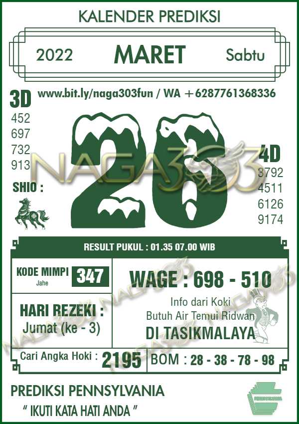 Prediksi Pennsylvania Pools Sabtu 26 Maret 2022 | Web Toto Naga303