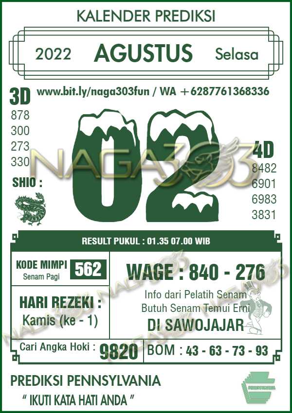 Prediksi Pennsylvania Pools Selasa 02 Agustus 2022